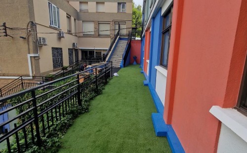 CESPÉD ARTIFICIAL Y PAVIMENTO DE CAUCHO EN COLEGIO